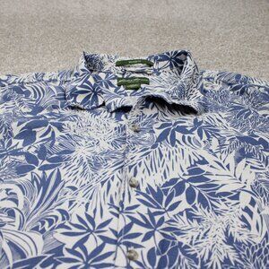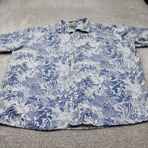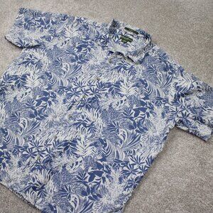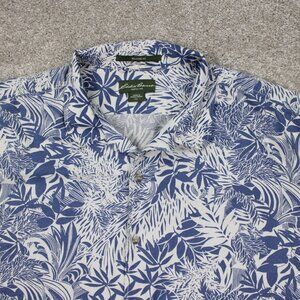 Eddie Bauer Hawaiian Shirt Mens 2XL XXL Blue/White Linen/Cotton Relaxed Fit S/S