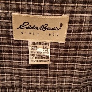 Eddie Bauer Heavy Cotton Long Sleeve Button Down Brown Plaid Shirt Men 2XL/T