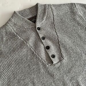 Eddie Bauer Henley Button Fishermen Sweater Cotton Heather Gray Mens Size Extra Large