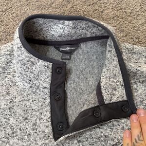 Eddie Bauer Henley Sweater Mens L Fleece Knit 1/4 Button PullOver Preppy Golf