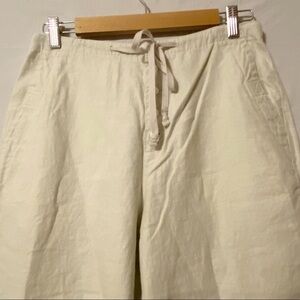 Eddie Bauer High Waist Button Up/Tie Linen Capri Crop Pants 8. Super cute wide leg linen pants in great condition see photos for details. Approximate measurements laying flat 14” waist 12” rise 26” inseam.