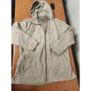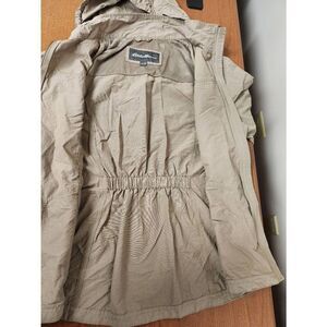 Eddie Bauer Hooded Nylon Full Zip Beige Jacket with Adjustable Waist Size XL
