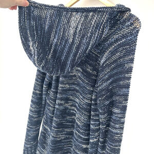Eddie Bauer Hoodie Womens XL Blue Marled Open Knit Pullover Long Sleeve Boho