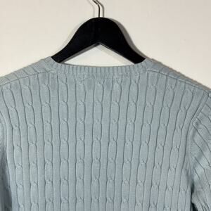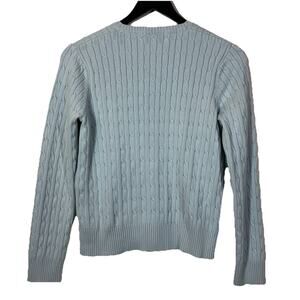 Eddie Bauer Icy Blue Cardigan Cable Knit Sweater Small Vintage Preppy Buttons