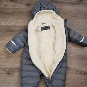 Eddie Bauer Infant Down Insulated Puffer Snowsuit Sherpa Lined 18M Gray Hooded