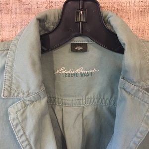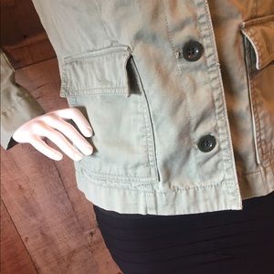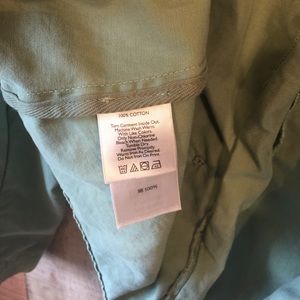 Sage green collar Legend Wash button up jacket. Front Flap pockets. Lighter weight 100% cotton. Approx. 19" across x 22" long. EUC