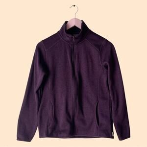 Deep purple/eggplant fleece lined zip-up jacket by Eddie Bauer with a knit exterior. Super warm and cozy. Excellent preowned condition. Size medium.