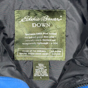 Eddie Bauer Jacket Adult LARGE Blue Goose Down Quilted Outdoor Lined Zip Pockets
