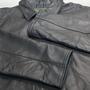 This is a pre-owned Men's Eddie Bauer Black Lamb Leather Full-Zip Jacket in a Size XL Tall. This jacket is in good condition overall with light general wear and a couple of small scuffs on the back shoulder (see photos). The jacket has a full polyester lining, two front pockets, and an interior pocket. The jacket measures more closely to a MODERN LARGE SIZE THROUGH THE CHEST & BODY (RATHER THAN AN XL). Please review the measurements on photo #3 to determine fit prior to purchase! The leather is soft and flexible (not rigid). I encourage you to enlarge the photos to view small details. If you have any questions about this item, please ask!