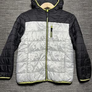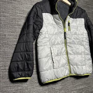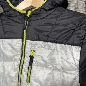 Eddie Bauer Jacket Kids M (10/12) Gray Black Full Zip Fleece Puffer Nylon