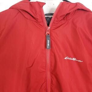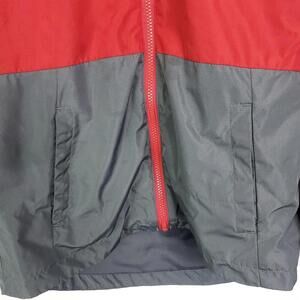 Eddie Bauer Jacket Kids M Full Zip Hooded Windbreaker Red Gray No Lining