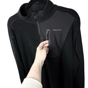 Eddie Bauer black pullover fleece with a zip pocket. Comfortable and stylish.