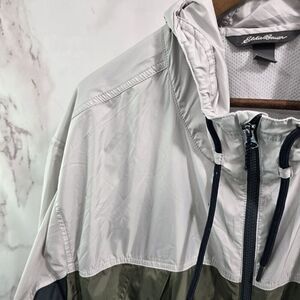 Eddie Bauer Jacket Mens 2XL XXL Gray Green Windbreaker Zip Rain Colorblock