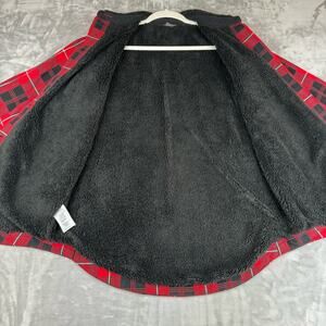 Eddie Bauer Jacket Shacket Womens Medium Red Black Plaid Sherpa Button Up (0735)