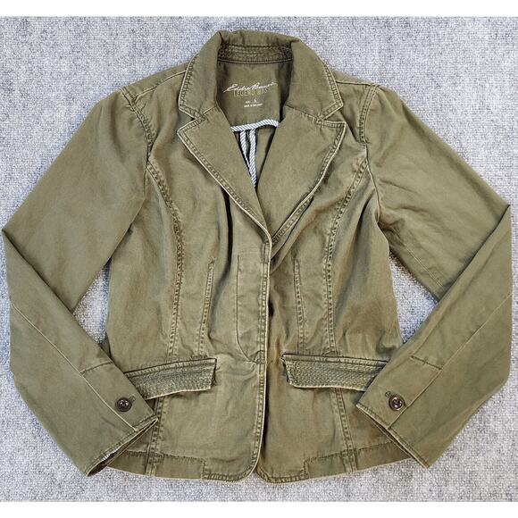 Eddie Bauer Jacket Womens 4 Green Legend Wash Two Button Lightweight Casual Work