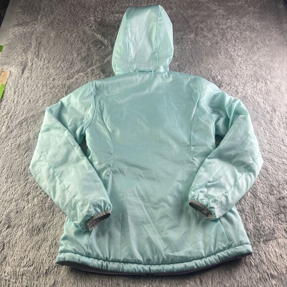 Eddie Bauer Jacket Womens Extra Small White Blue Aqua Reversible Puffer Coat