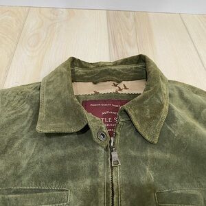 Eddie Bauer Jacket Womens Large Green Seattle Suede Leather Washable Zip