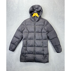 Eddie Bauer Jacket Womens Medium Luna Peak Black Down Parka Puffer Full Zip Logo