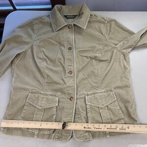 Eddie Bauer Jacket Womens XL Tan Beige Stretch Corduroy Boho Cargo Pocket Chore