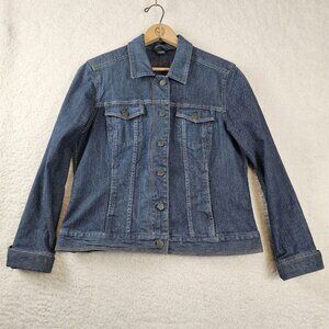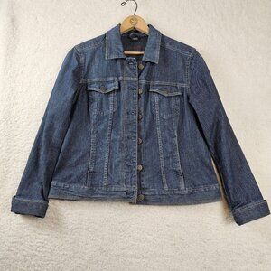 Eddie Bauer Jean Jacket Women's Large Raw Blue Denim Trucker Western Cropped