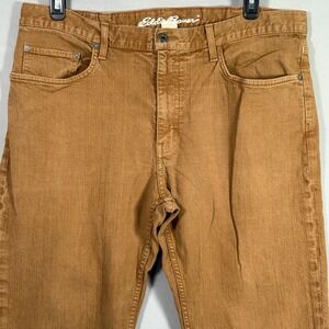 Eddie Bauer Jeans Men's Size 38x36 Tall Straight Leg Brown Denim Jeans Distress