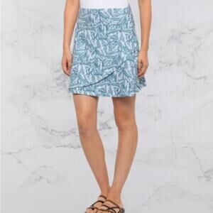 Eddie Bauer Kacey skirt. Faux wrap style. Stretchy, athletic material. Green with black leaf pattern. Size Large. Good, used condition.