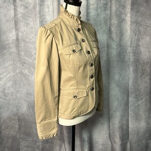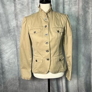 Eddie Bauer Khaki Ruffle Collar Safari Jacket with Ruffle Cuffs - MP