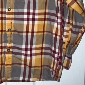 Eddie Bauer Kids Plaid Button Down Shirt yellow burgundy gray white boy's size 7