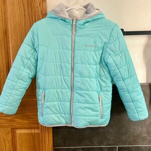 Eddie Bauer Kids Reversible Hooded Puffer Jacket Faux Fur Lined Medium 10/12