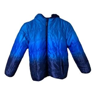 Eddie Bauer Kids Youth Reversible Plush Hooded Puffer Jacket Blue Ombré Size 7/8