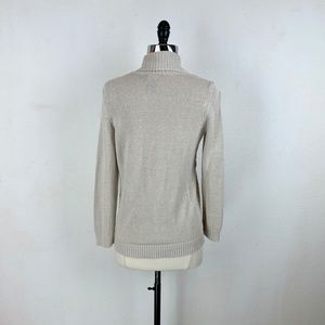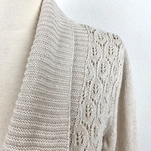 Eddie Bauer Knit Cardigan Oatmeal Linen Cotton Textured Rolled Collar Open Small