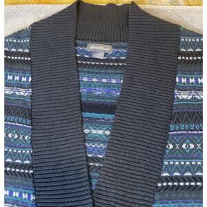 Eddie Bauer Knit Cardigan Sweater Women’s Size Small Blue Fair Isle Wool Blend