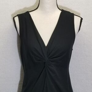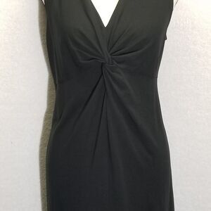 Eddie Bauer Womens Size Large Dress Jersey Knit Knee Length Black Twist Knot Front Classic Comfort Office Commuter