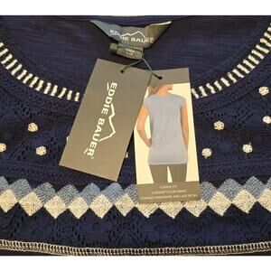 Eddie Bauer Top Womens Size Large Navy Blue 100% Cotton. Lace and Embroidery Detail Lightweight Breathable Cotton with a Round Neckline and Pullover Styling. Machine Wash. New With Tags.