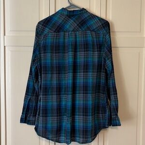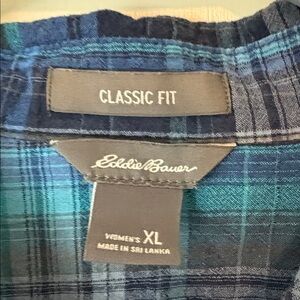 Eddie Bauer Ladies Teal, Blue, Black Lightweight Plaid button down shirt.Size XL