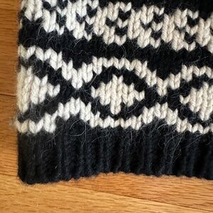 Eddie Bauer Lambswool Angora Rabbit Black and White Sweater Size Medium. Lovely, warm women's sweater from Eddie Bauer, size Medium. 67% lambswool; 22% Angora rabbit; 11% nylon. Excellent, clean condition with no snags or holes. No pilling.