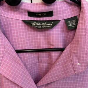 Eddie Bauer Lavender checkered shirt with button-up design. Ideal for versatile wear. Stretchy, and wrinkle resistant. Size XL. EUC