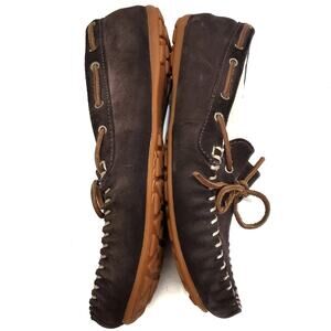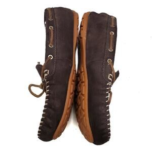 Eddie Bauer | Leather Moccasin Slippers Faux Sherpa Lining