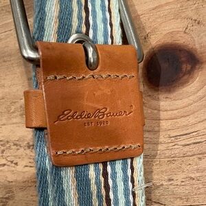 Eddie Bauer Leather Multicolored Canvas Striped Belt Unisex Preppy Business XL