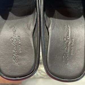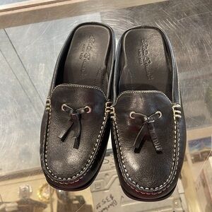 Eddie Bauer Leather mule shoes women’s size 6M Navy Blue Great preowned shape