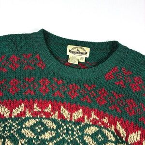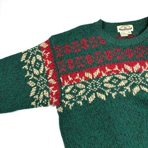 Eddie Bauer Legends Vintage 100% Wool Green Knit Fair Isle Snowflake Sweater