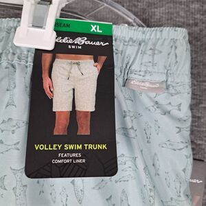 Eddie Bauer Light Blue Fish Print Volley Swim Trunk Shorts NWT MENS Size XL