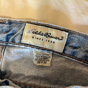 Stylish and comfortable Eddie Bauer light blue jeans perfect for any casual occasion. These jeans offer a classic fit and timeless style. See photos for measurements.