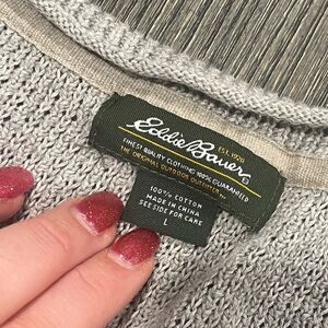 Eddie Bauer Light Gray Long Sleeve Open Front Knit Cardigan Sweater Size L