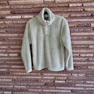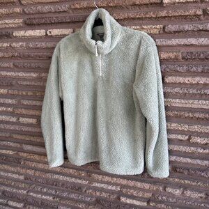 Eddie Bauer Light Green Fleece 1/4 Zip Pullover Cozy Sweater Size Medium