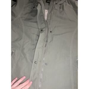 • Features: Zip & snap front, adjustable hood, zippered pockets
