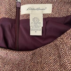 Eddie Bauer | Lined Wool Skirt Burgundy and Creme | Herringbone Pattern
