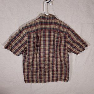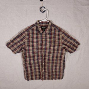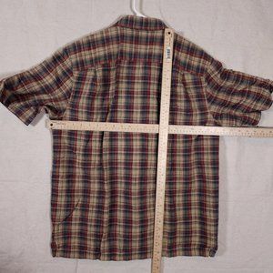 Eddie Bauer Linen Cotton Button Shirt Mens Medium Plaid Short Sleeve Pocket
