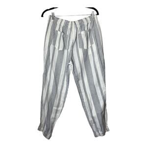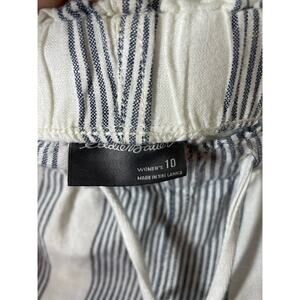 Eddie Bauer Linen Cotton Jogger Pants Striped White Blue Summer Sz 10 Pockets