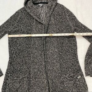 Eddie Bauer Linen Cotton open front cardigan w/hood & pockets black & white knit